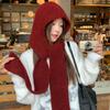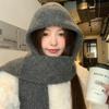 Gray Thickened Hat Scarf All In One Warm Knitted Hat Women's Autumn and Winter Ear Protection Balaclava Woolen Hat
