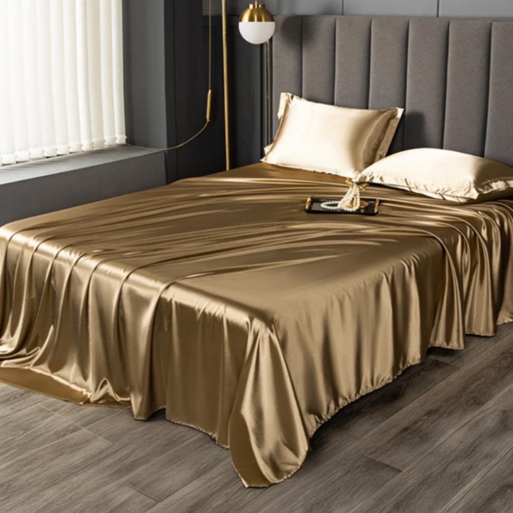 Glossy Satin Silk Bed Sheet With 2 Pillowcase Twin/Full/Queen/Top Sheets Solid Color Flat Bed Sheets Smooth Bed Sheet Sets