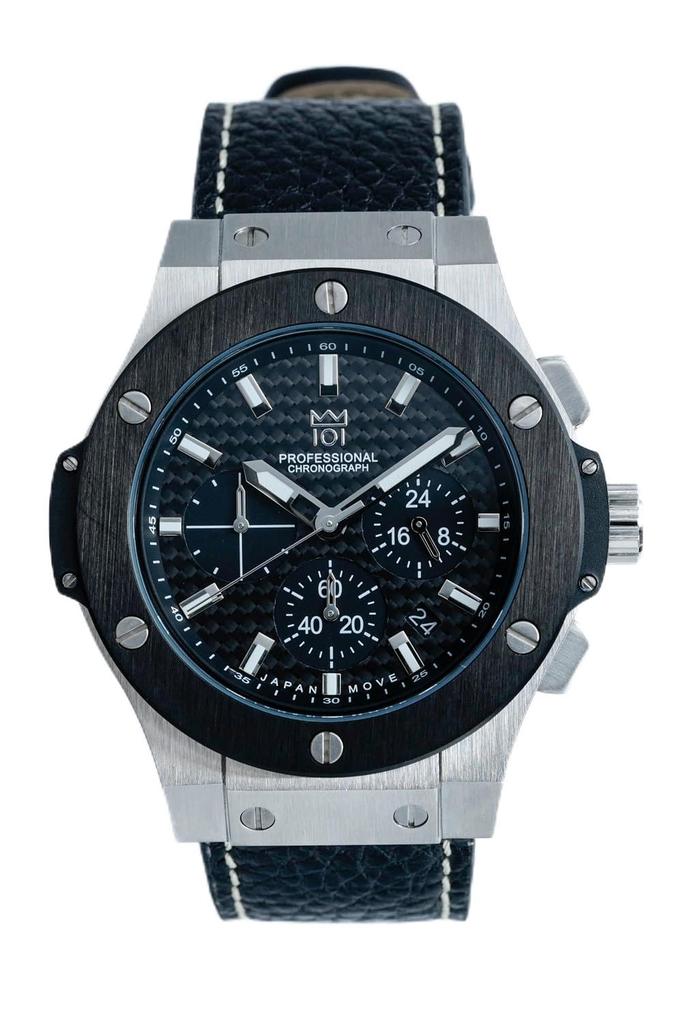 New Model [HYAKUICHI 101] Hyakuichi Wristwatch, 100m Water Resistant, Chronograph, Date Display, SilverBlack Carbon Fiber, Black Leather Strap — buy online with free worldwide shipping!