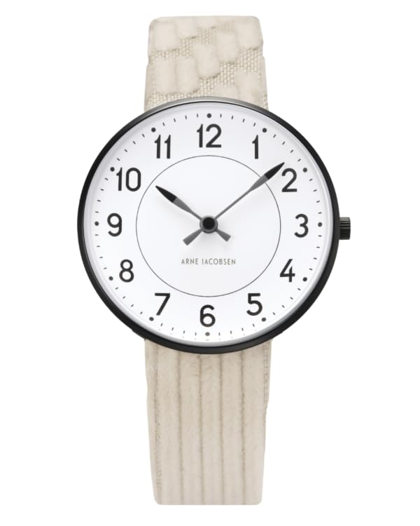 ARNE JACOBSEN x mina perhonen 34mm Scandinavian design watch with land puzzle strap, STATION 53411-1687, white and ivory — buy online with free worldwide shipping!