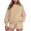 Women's Fashion Sportswear Casual Long-Sleeved Pullover Sweatshirt Drawstring Shorts Set