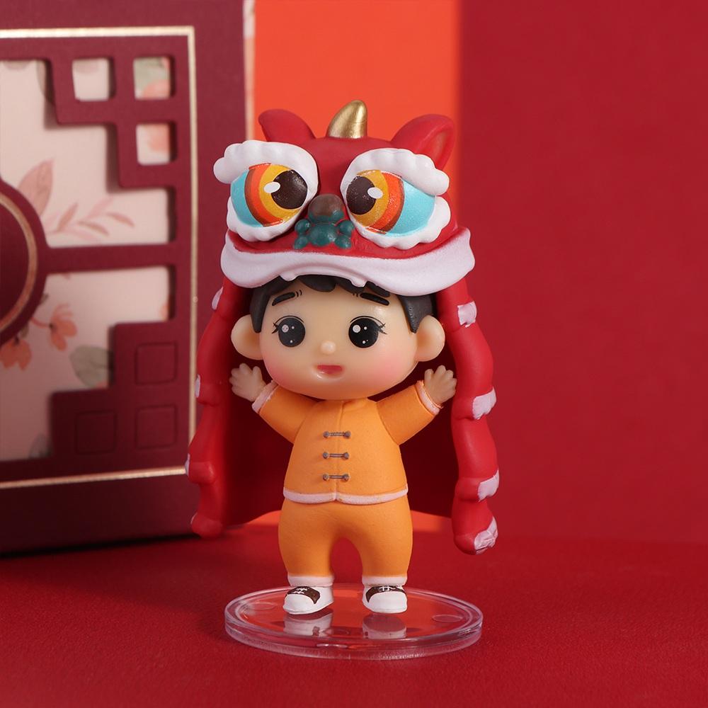 PVC Lion Dance Koi Boy Girl Doll Decoration New Year Miniature Ornaments Car Interior Supplies