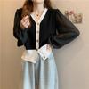 Autumn Winter Loose Casual V-neck Cardigan Sweater Women Long Sleeve Chiffon Patchwork Knitting Coat Top
