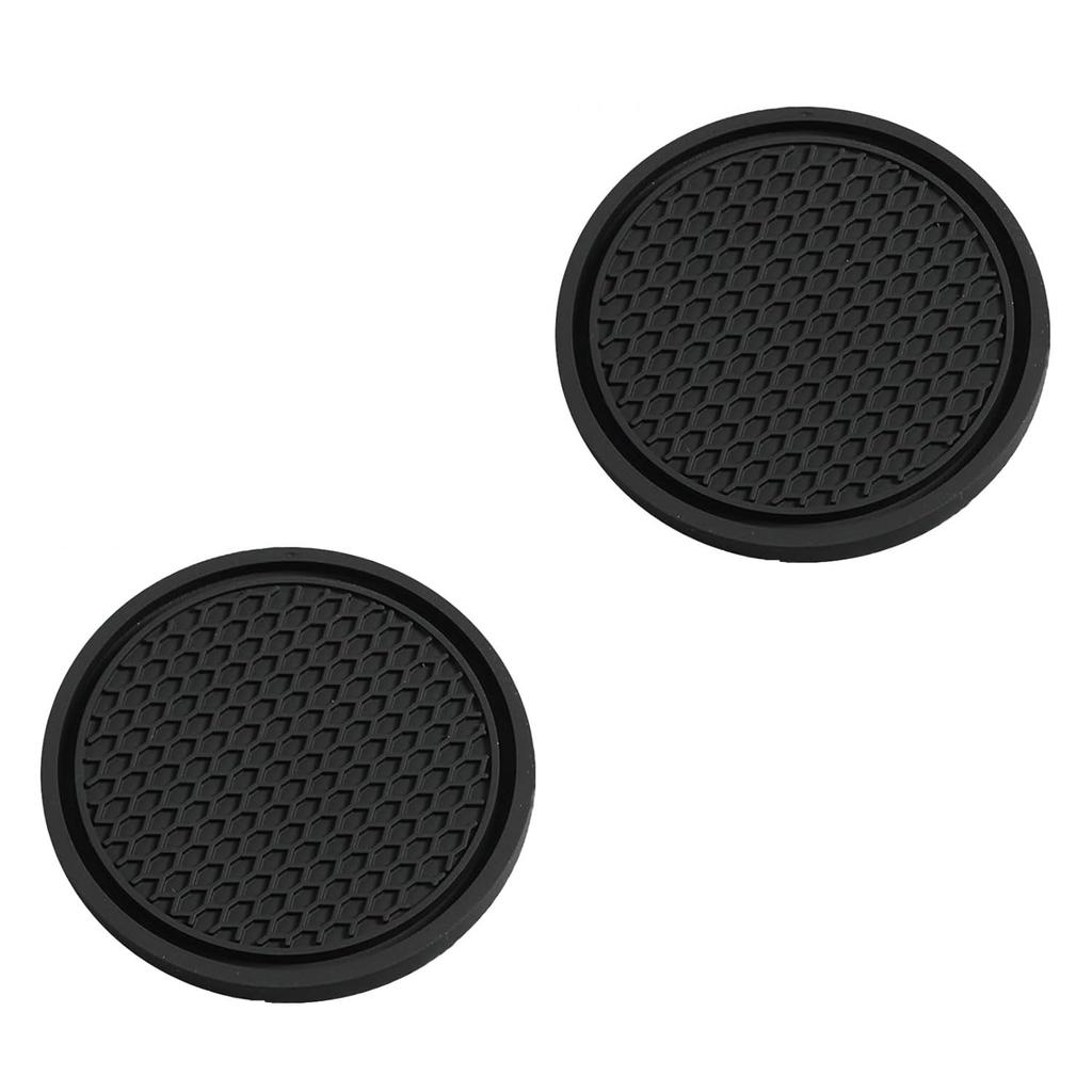 XuJJJJunB Car Coasters, Round, 70mm Diameter, Pack of 2, Black, Absorbent, Non-Slip, Anti-Vibration, Cup Mats for Cars