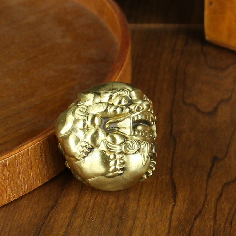 Brass Pixiu Walnut Hand Handle, Retro Old Man Exercise Finger Appliance, Copper Ware, Pure Copper Pixiu Pair of Hand Handles
