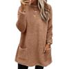 Autumn Winter Solid Color Print O-Neck Women's Long Sleeve Pocket Plush Hoodie T-shirt Top