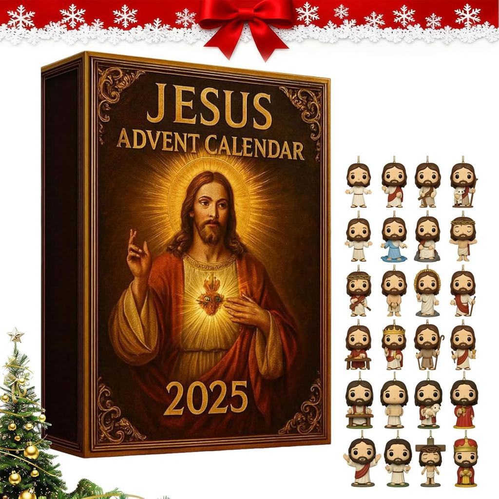 Jesus Advent Calendar 2025, Advent Of Jesus 2025 Advent Calendar with 24 Different 2D Flat Acrylic Jesu Figurines for Christmas Tree Ornaments