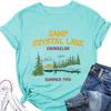 Summer New Women's Short Sleeved T-shirt Camp Crystal Lake Print Loose Round Neck Casual Top Paired with All Fashionable Clothing — buy online with free worldwide shipping!