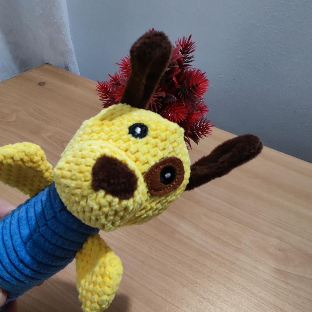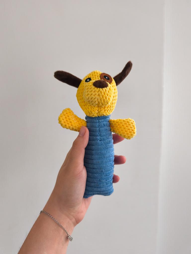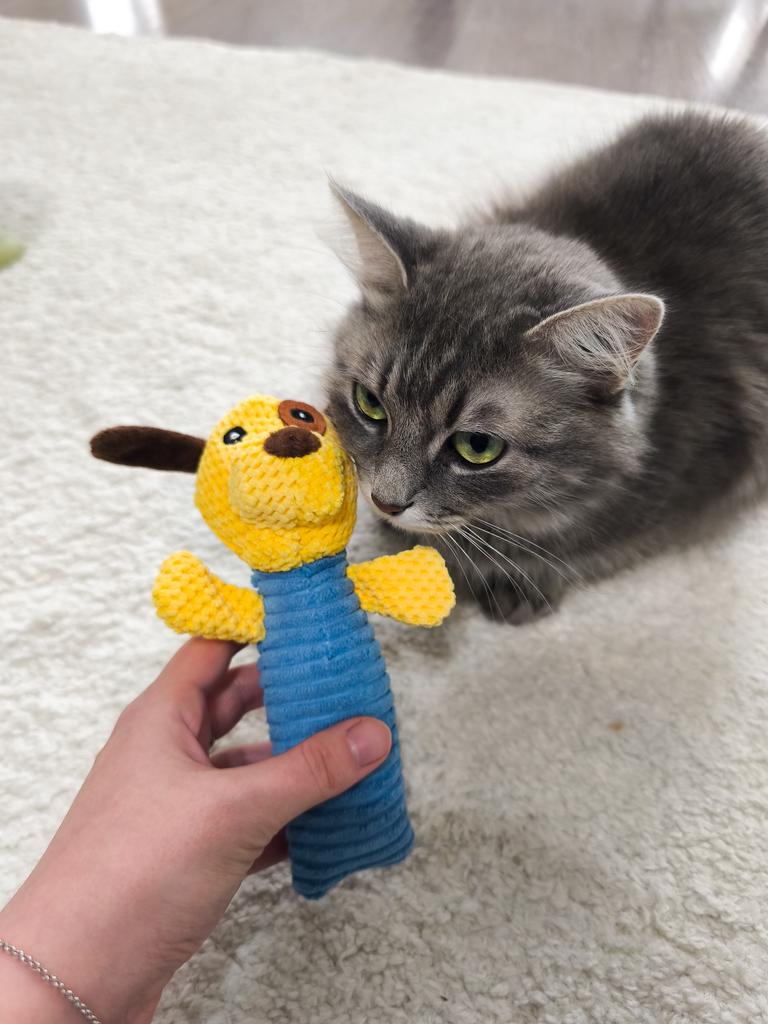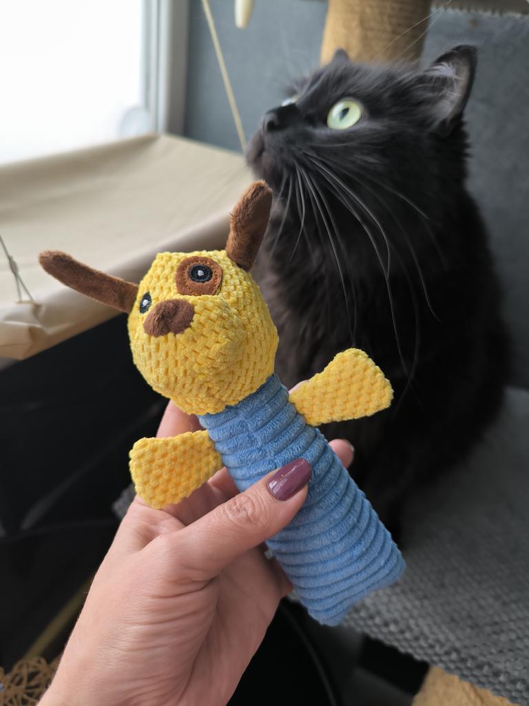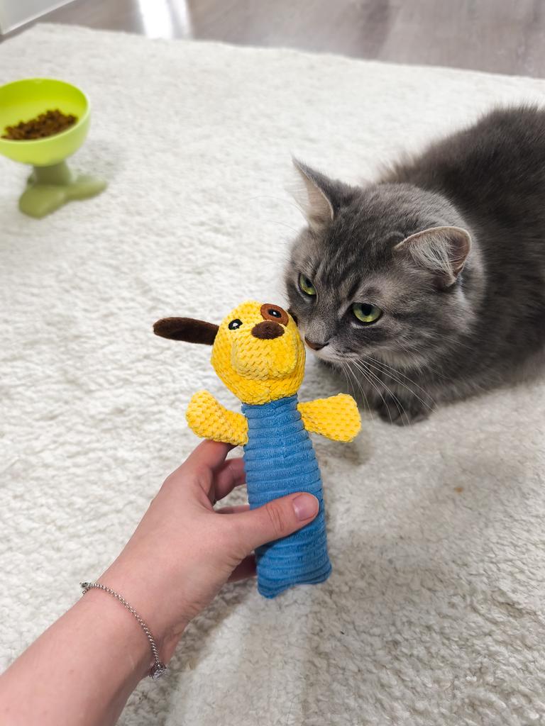 Perfect toy for the pet! This toy is one of the most successful ones we've bought! Both the dog and the cat in the house just don't stop playing with it. The sounds it makes really attract attention, and it gives a sense of a real "friend" – especially for animals that are often alone. The material – corn kernels – is surprisingly high quality! It is resistant to chewing, does not break down easily, and that's important for a dog who really loves to destroy toys. The velvety design is pleasant to the touch, easy to grip, and the cute shape makes it not only useful but also cute on the pet's sofa or bed.. Totally recommend to anyone looking for a toy that will both entertain, occupy, and last a long time!