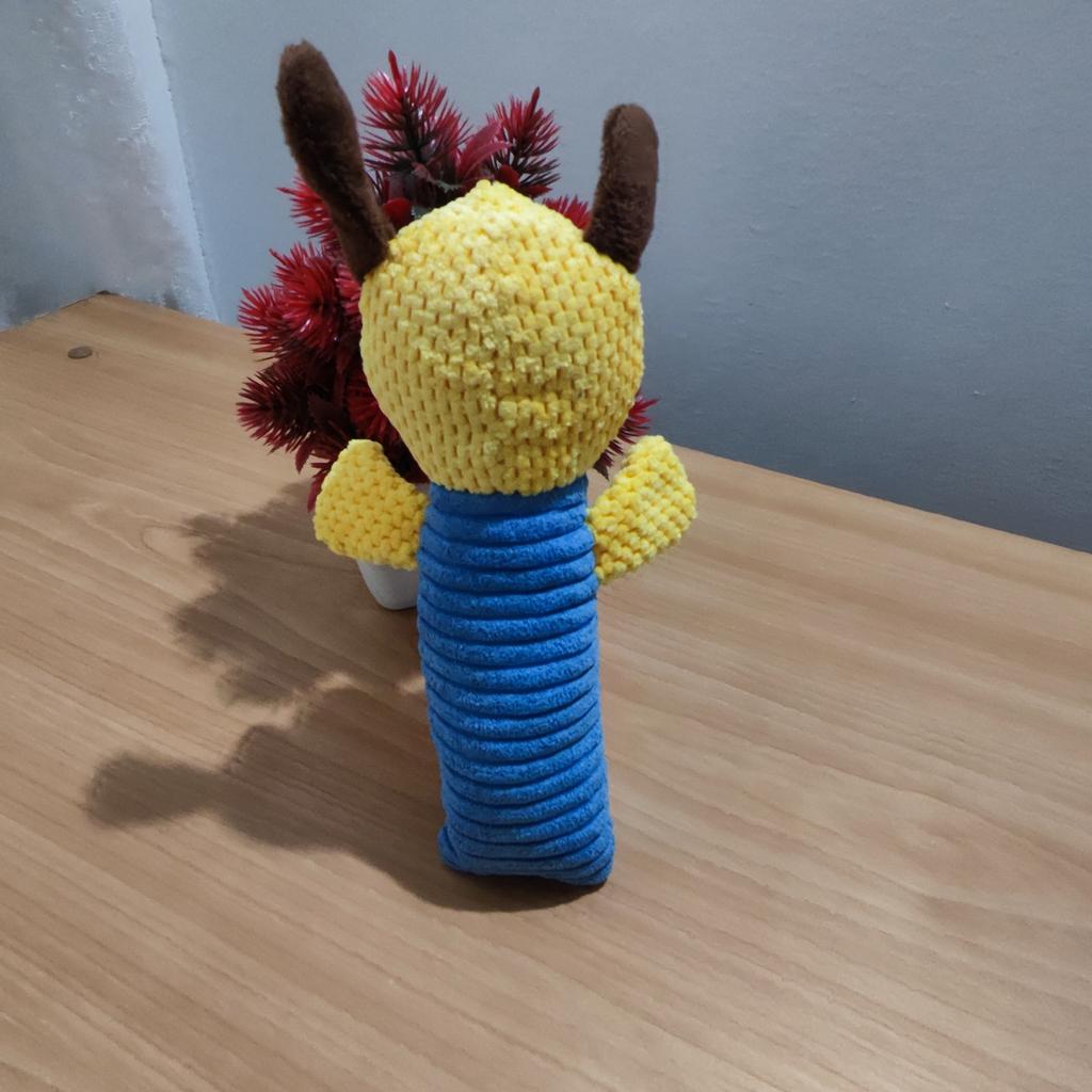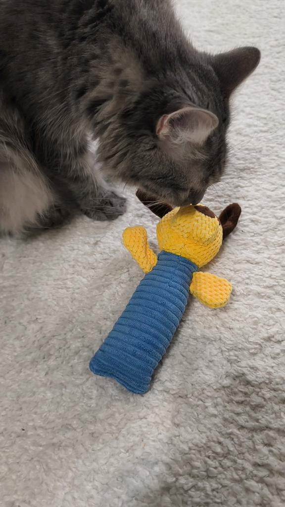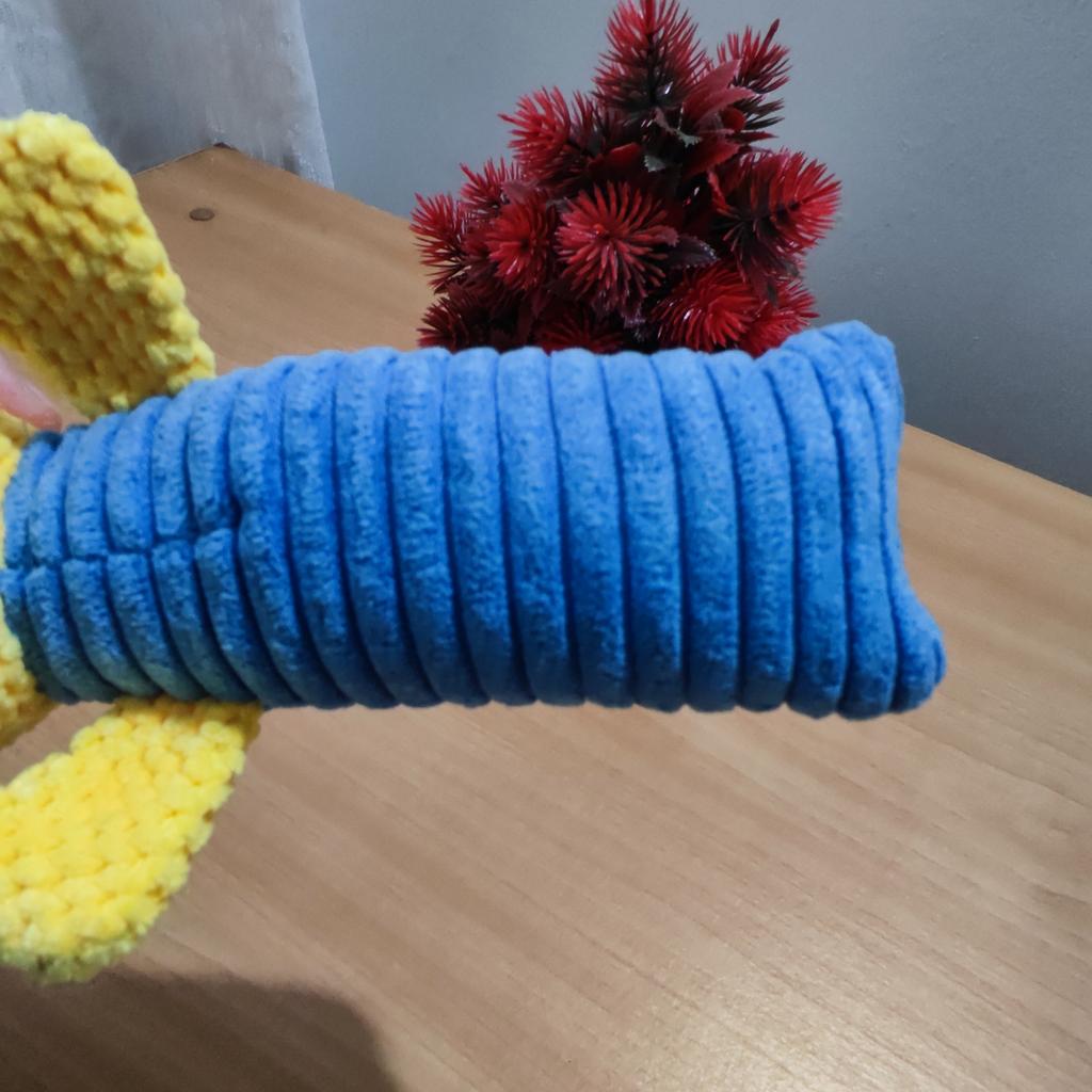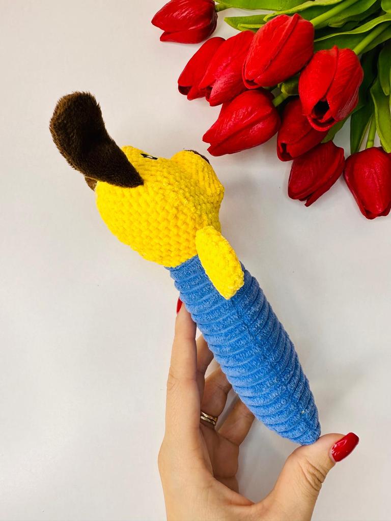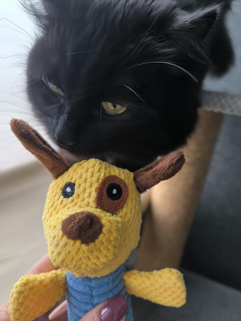 Perfect toy for the pet! This toy is one of the most successful ones we've bought! Both the dog and the cat in the house just don't stop playing with it. The sounds it makes really attract attention, and it gives a sense of a real "friend" – especially for animals that are often alone. The material – corn kernels – is surprisingly high quality! It is resistant to chewing, does not break down easily, and that's important for a dog who really loves to destroy toys. The velvety design is pleasant to the touch, easy to grip, and the cute shape makes it not only useful but also cute on the pet's sofa or bed.. Totally recommend to anyone looking for a toy that will both entertain, occupy, and last a long time!