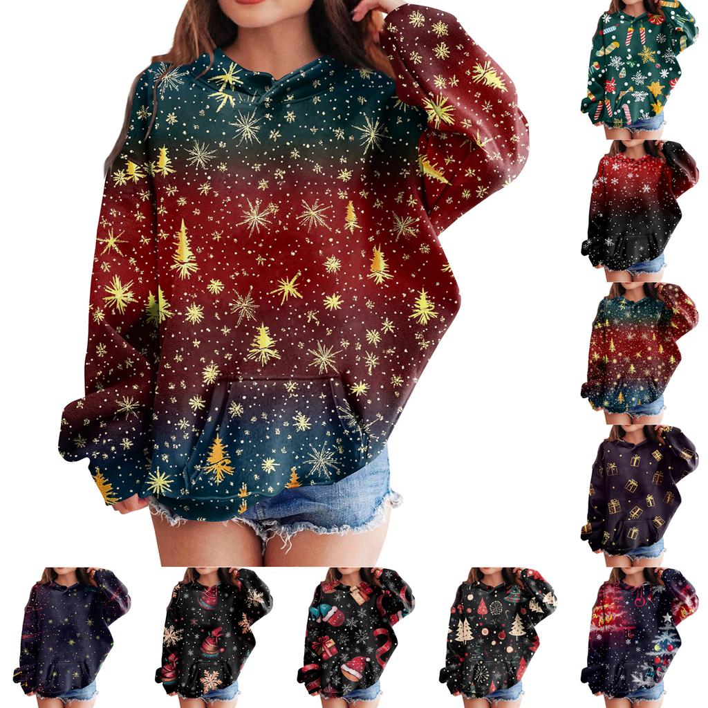 Sweatshirts For Teen Girls Hoodies Long Sleeve Drawstring Pullover Cute Oversized Hoodie Christmas Day