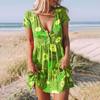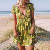 Women's Fashion Loose V-Neck Short Buttons Printing Casual Dress