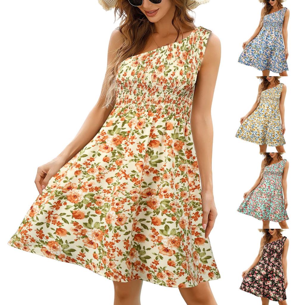 Summer Beach Skirt Floral One Shoulder Medium Length Dress Bohemian Strapless Strapless Dress — buy online with free worldwide shipping!