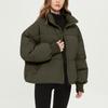 Women's Fashion Leisure Solid Color Long Sleeve Loose Stand Collar Zipper Coat Cotton Top