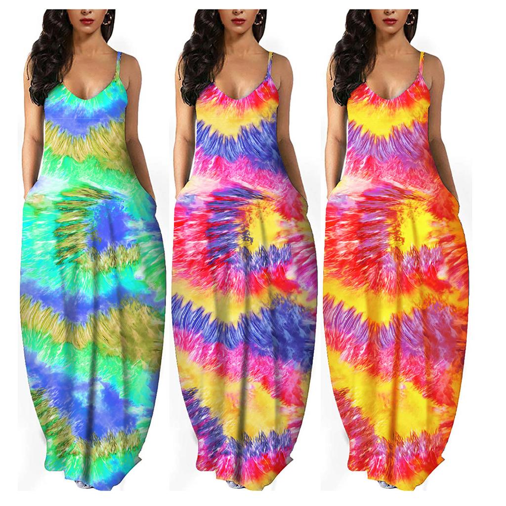 Women Gradient Tie-Dye Sleeveless V Neck Maxi Dress Sundress Beach Long Dres — buy online with free worldwide shipping!