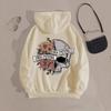 Ladies Spring Autumn Casual Hooded Long Sleeve Big Pocket Halloween Skull Flower Printed Pullover Hoodies Sweatshirt Top
