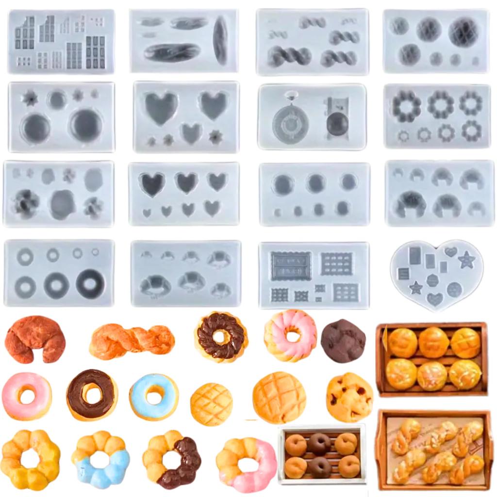 [Set of 16 Miniature Silicone Molds] Easily create a bakery-like world at home! This "Set of 16 Miniature Silicone Molds" is a handmade silicone mold filled with delicious bread and sweets-themed designs. Create delicious miniature food items like classic croissants, donuts, chocolates, biscuits, melon bread, French bread, macarons, puddings, and tarts. Use resin or clay to recreate miniature bakeries, breakfast sets, and sweets shop dioramas. The focus is on sweets and bakery designs, offering a playful variety! Each mold is compact and easy to handle, measuring approximately 4.5cm x 2.7cm, allowing you to capture fine details. [Versatile] Compatible with a wide range of materials, including polymer clay, UV resin, epoxy resin, candles, and soap. Reusable. Perfect for miniature crafters, those who enjoy decorating sweets and fake food, and those who want to make original accessories. Also recommended for crafting with children or workshops.