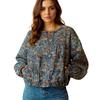 Printed Denim Jacket Loose Long Sleeved Retro Floral Batfly Sleeve Washed Denim Jacket For Women