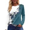 Women's Fashion Casual Slit Hem Round Neck Long Sleeve Loose Printed T-Shirt Ladies Top
