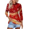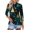 Women's Fashion Casual Lapel Short 3/4 Sleeve Christmas Print Shirt Women's Button Up Tops
