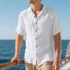 Men's Summer Linen Short Sleeve Shirt Casual Breathable Button Shirt Holiday Beach Summer Tops With Pockets