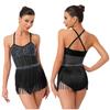 Women's Latin Dance Leotard Jazz Dance Top Sleeveless Fringe Sparkly Bodysuit Samba Salsa Dancewear