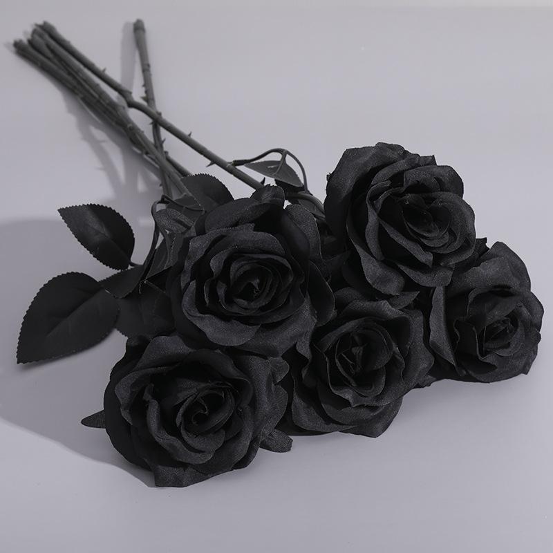 1PC Pure Black Single Rose Halloween Ghost Festival Horror Gothic Style Dark Bouquet Series Decoration Home Garden Room Decor