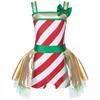 Girls Christmas Jumpsuit Striped Design Rhinestone Bow Adorned Ruffle Skirt Shorts Bodysuit Cosplay Costume