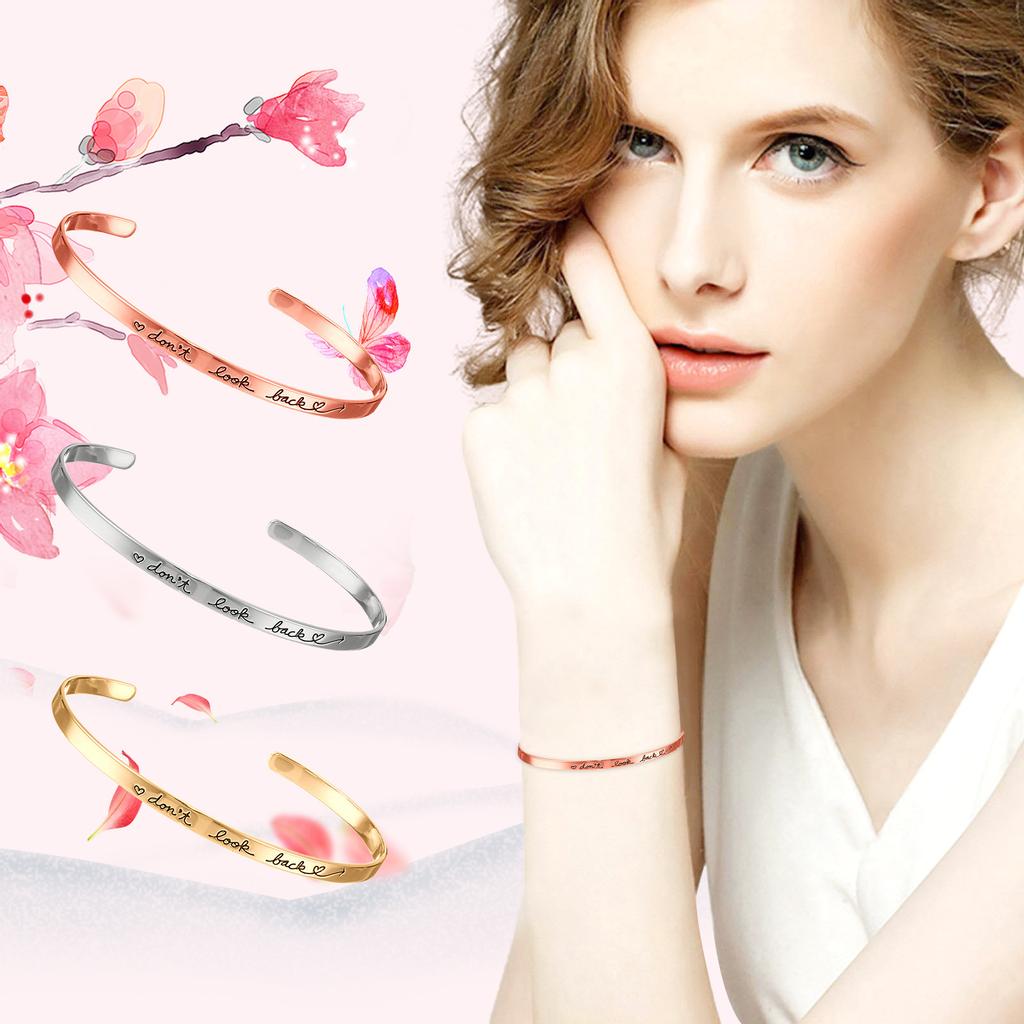 Don't Look Back Inspirational Lettering Cuff Lettering Bracelet