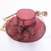 Vintage Organza Wide Brim Hat For Women Church Dress Bridal Wedding Hat Floral Mesh Sun Hat Party Beach Caps