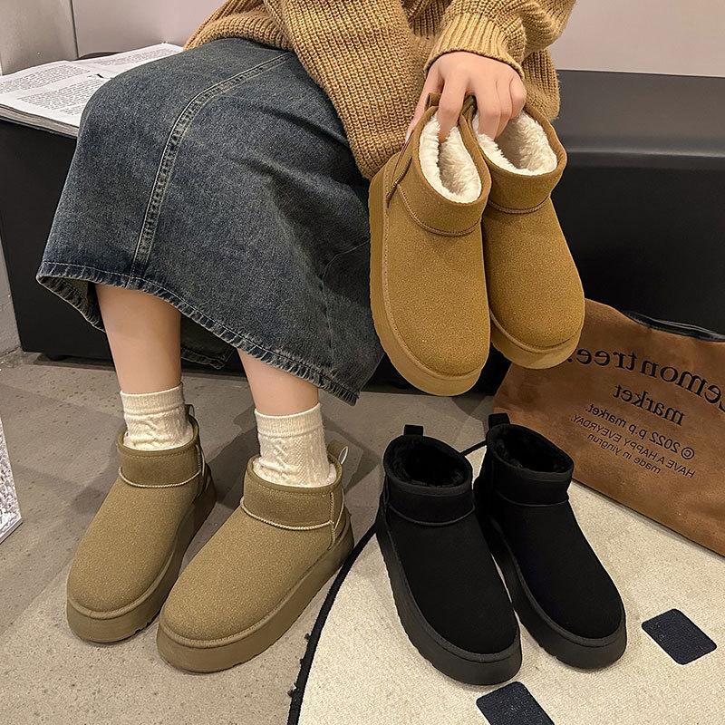 Short snow boots women's 2025 new winter velvet thickened Northeast large cotton shoes thick sole one pedal bread shoes — buy online with free worldwide shipping!