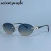 Small Frame Oval Rimless Sunglasses Women Luxury Brand Vintage Frameless Punk Sun Glasses For Ladies Trendy Outdoor Shades