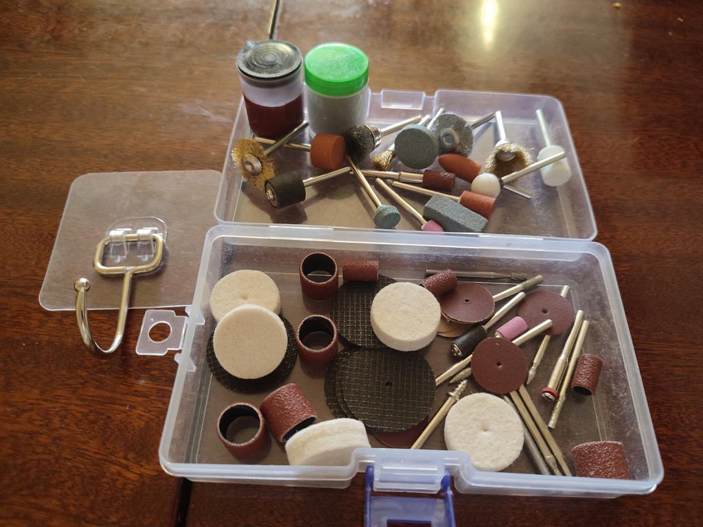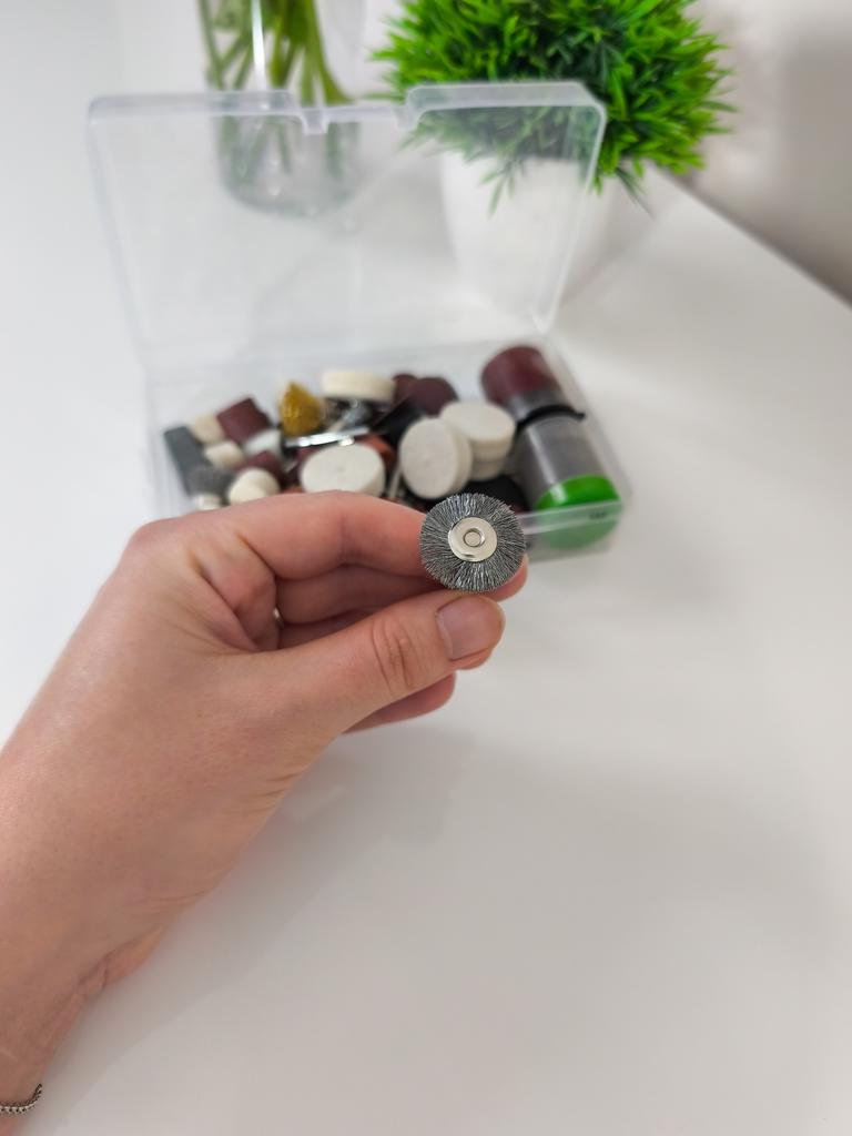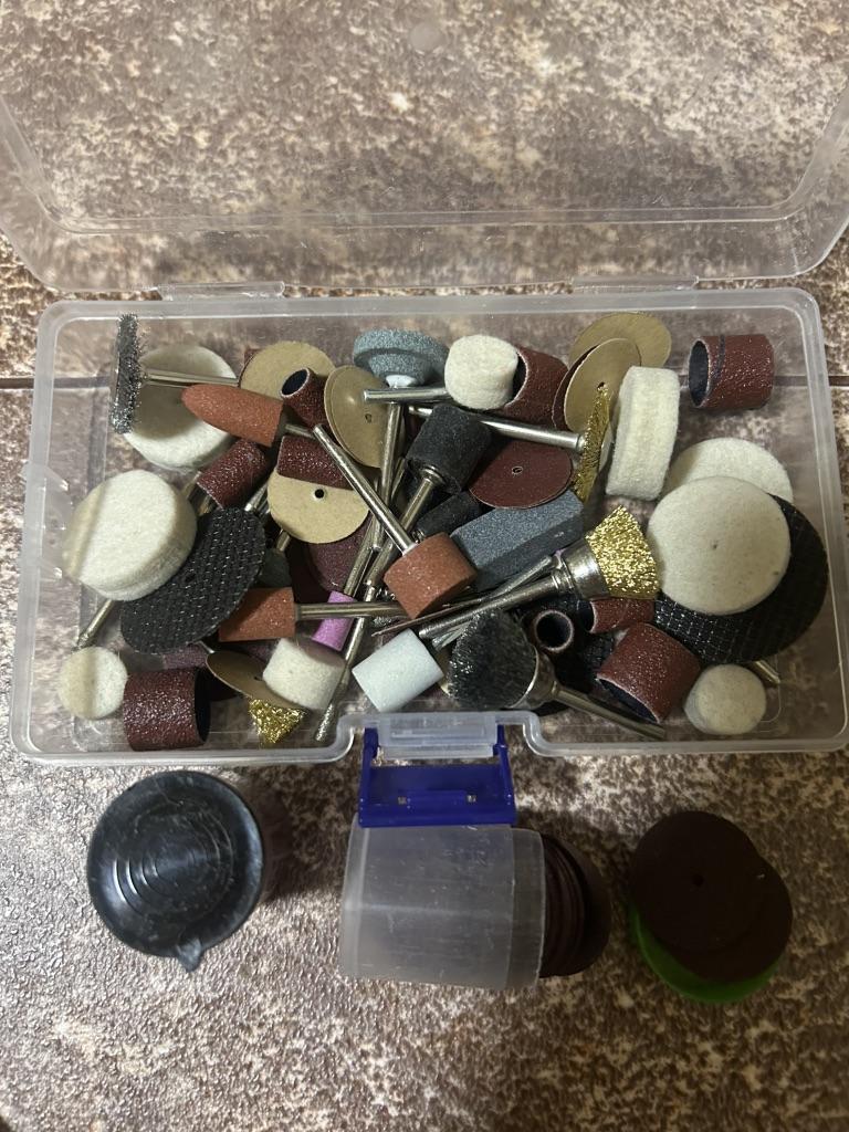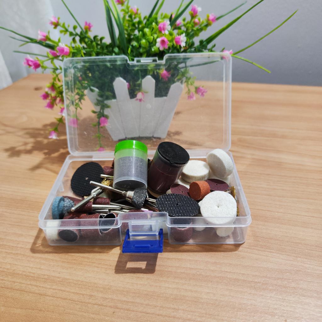 The 100-piece accessory kit for a rotary tool is a perfect solution for any DIY enthusiast or professional who needs precise and convenient power tools. The kit includes a wide variety of accessories for grinding, polishing, cutting, drilling, and engraving – making it ideal for working on wood, metal, plastic, glass, and more. *Outstanding advantages:* - Includes a universal chuck and spindle lock for quick accessory changes. - Suitable for common rotary tools such as Dremel and similar. - Allows for the execution of delicate work such as engraving on jewelry or handmade projects. - High-quality materials ensure long-lasting durability. Perfect for home use, craft workshops, or small repairs – one set that concentrates everything you need!