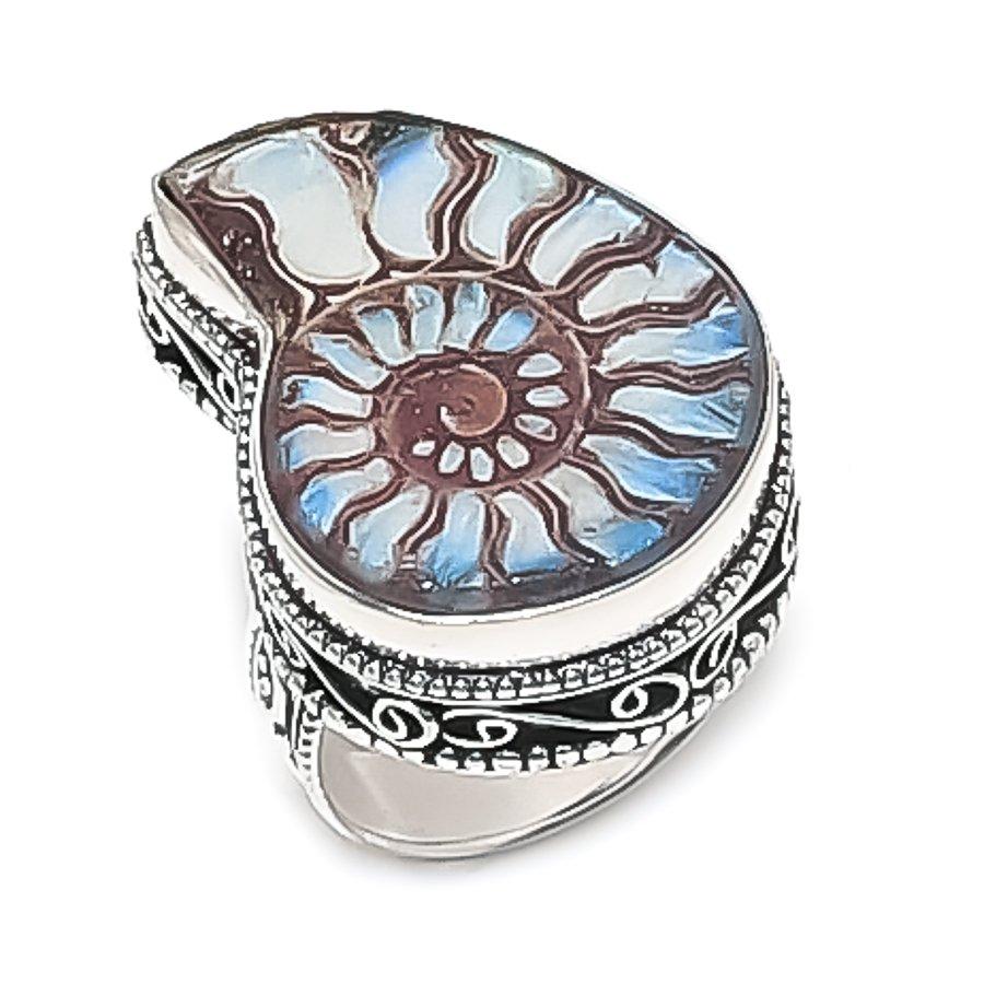 Ammonite Fossil Gemstone 925 Sterling Silver Jewelry Ring Size 9