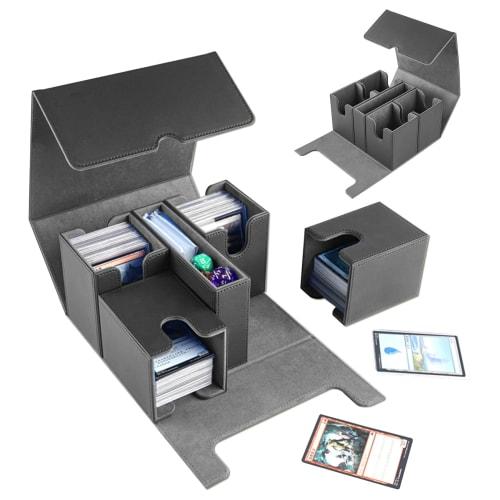 - Large Capacity Deck Case 2024 Newly Released 5in1 Separation Structure The deck case was jointly designed by our company and a card collector, and has a reasonable storage size and is easy to put in and take out.Adopting the most novel separation design, it includes 4 separate deck cases and dice boxes.4 independent small deck cases can store different types of cards, each small deck case can hold about 220 cards, allowing you to better distinguish between card groups.A separate dice box can store dice or cards.It can hold up to 880+ cards, and you can easily insert cards with sleeves.A better way to store cards, easy and convenient, a good way to solve messy collection habits.