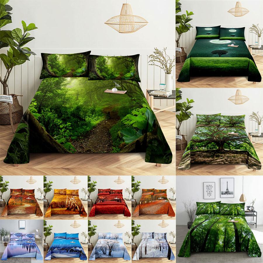Bed Sheet Pillowcase Bedding Set Linens Cover Senic Queen King Double Size 220x240 Trees for Bedroom Soft Twin Full Single New