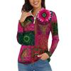 Women's Casual Fashion Retro Floral Print Long Sleeve Zipper Neck Top T-shirt