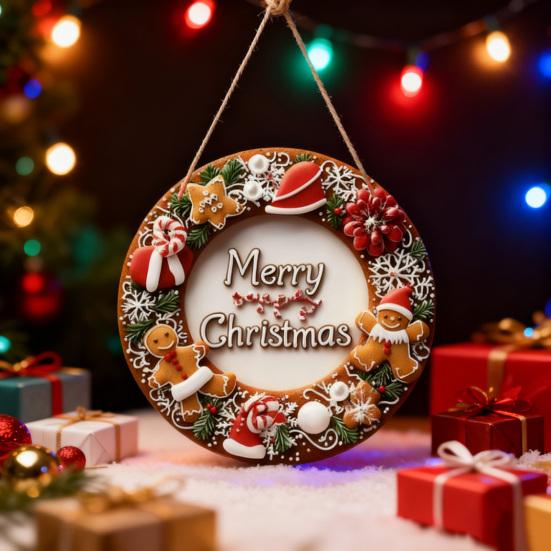 Enhance your holiday decor with this charming Christmas ornaments. Crafted with exquisite detail, featuring huts, trees, wreaths, and more, each design includes festive messages like "welcome" or "Merry Christmas." Made from natural wood, these decorations exude warmth and eco-friendliness.