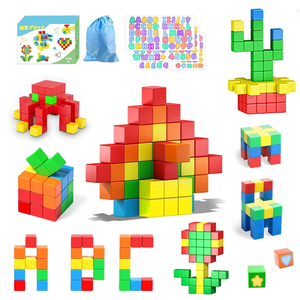 ✅ [70-Piece Magnetic Cube Block Set Contents] These magnetic cubes come in six rich colors: red, orange, yellow, green, blue, and white. This block set includes 12 green, 12 yellow, 12 orange, 12 blue, 10 red, and 6 white. It also includes 3 alphabet stickers, 1 Japanese instruction manual, 1 storage bag, and 1 dedicated storage case. These magnetic building blocks can be assembled into various shapes. For more 3D puzzle shapes, please refer to the Japanese instruction manual. (Fun DIY, endless play possibilities!) The magnetic adsorption allows them to be combined with various accessories, bringing fun and immersing children in a magical world.