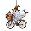 Halloween Pendant Witch Ghost Ride Shape Pendant Image Stained Glass Window Hanging Ornament Festivals Halloween Decoration