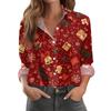 Women's Christmas Print Casual Half-Open Collar Long Sleeve Shirt — buy online with free worldwide shipping!