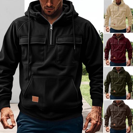 Features: Designed with a classic solid color hood and a practical multi-pocket layout, this men's sweatshirt exudes simplicity and fashion-forward style that never goes out of trend.