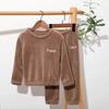 Children's Winter Thickened Warm Homewear Set Solid-Colour Round-Neck Pullover Top + Trousers Two-Piece Set Suitable for Outdoor Wear