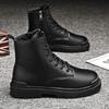Fashion Black Men Leather Boots Winter Warm Mens Ankle Boots Outdoor High Top Casual Shoes with Fur Lace-Up Leisure Work Boots