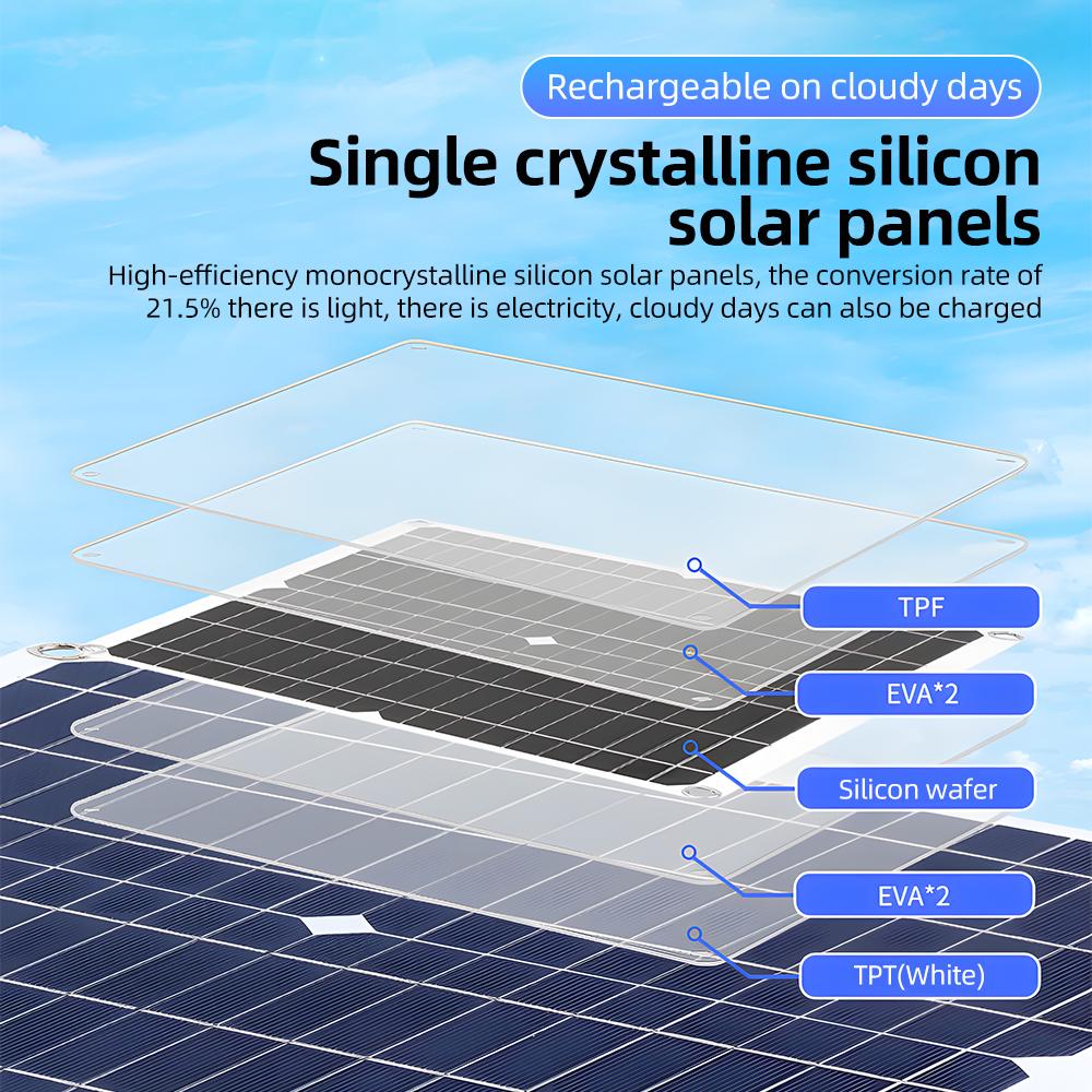 Solar energy packaging process: TPF (glossy)+EVA2+crystalline silicon wafer+EVA2+TPT (white)