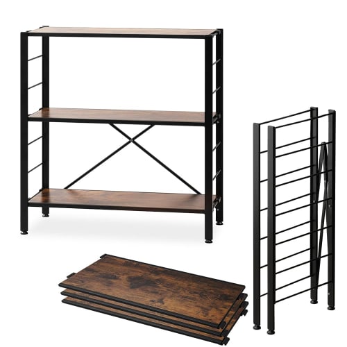 Easy Assembly: Iris Ohyama Steel Rack with Adjustable Shelves. Flexible Open Shelving, 3 Shelves, 76cm Wide, Vintage Brown, KRSR-3.