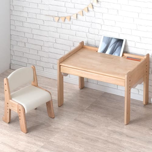 Tansu Gen Kids Desk and Chair Set, Designed by a Working Mom, 2-Piece Set, Height Adjustable, Single Seat, 4-Tier, Wooden, Natural x Ivory, 49600907(9 — buy online with free worldwide shipping!