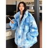 Winter Tie-dye Fur Rabbit Fur Jacket Medium and Long Large Size Lapel Women's Clothing Zipper Printing Plush Clothes Thick