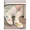 Ladies Autumn New Warm Thermal Storage Lace Knitted Ribbon Bow In The Tube Pile Stocking