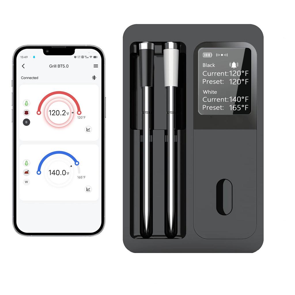 ——Dual Probe Design – Track two foods or cooking zones simultaneously for perfect temperature control.
